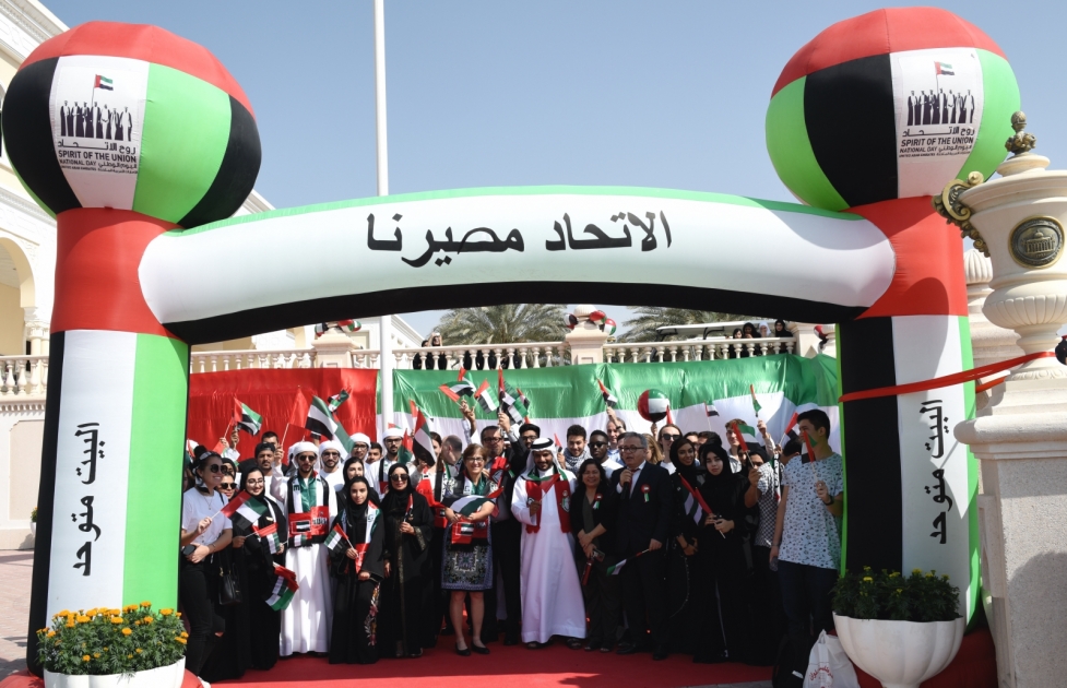 احتفلت الجامعة الاميركية في الشارقة اليوم بيوم العلم. وقام حشد من مجتمع الجامعة من كبار المسؤولين والأساتذة والطلبة برفع العلم على المدخل الرئيسي للجامعة صباح اليوم في تعبير عن الوحدة الوطنية والولاء للثقافة الاماراتية. ونظم الحفل مكتب شؤون الطلبة بالتعاون مع النادي الثقافي الاماراتي.