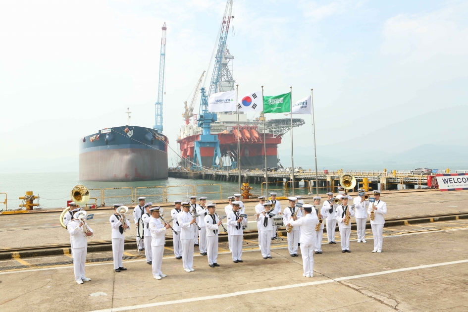 وتم تسليم الناقلة الجديدة للبحري خلال حفل أقيم في حوض موكبو البحري التابع لشركة هيونداي سامهو للصناعات الثقيلة في مقاطعة جيولا الجنوبية بكوريا الجنوبية، وذلك بحضور عدد من كبار المسؤولين من كلا الشركتين بمن فيهم الأستاذ صالح بن عبدالله الدباسي عضو مجلس إدارة شركة البحري، والدكتور عبدالملك بن عبدالله الحقيل عضو مجلس إدارة شركة البحري، والأستاذ أم كيه يون الرئيس والمدير التنفيذي لشركة هيونداي سامهو للصناعات الثقيلة، والأستاذ هشام بن ناصر النغيمش الرئيس المُكلَّف للبحري للنفط.
