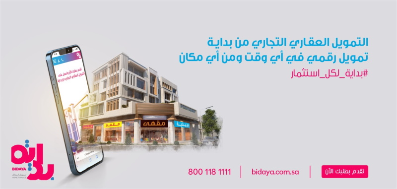 أعلنت شركة بداية لتمويل المنازل عن إطلاقها لمنتج التمويل العقاري التجاري والذي يمكن الحصول عليه عبر موقع بداية الرقمي حيث توفر بداية حلول تمويلية رقمية لتمكين العملاء من الحصول على التمويل المناسب بثلاث خطوات رقمية سهلة و مبسطة.