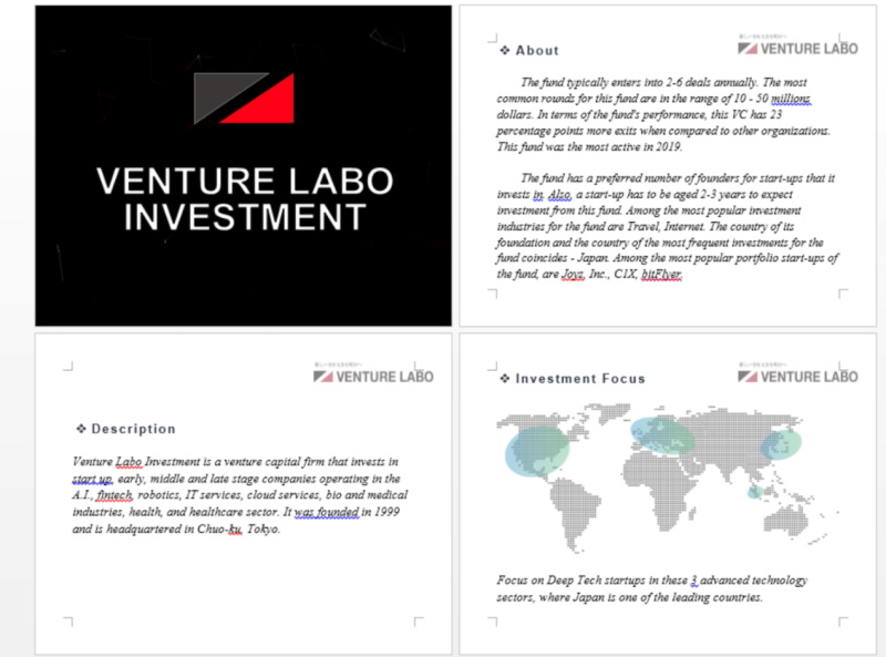 مستند احتيالي يحتوي على وصف لشركة رأسمال استثماري شهيرة