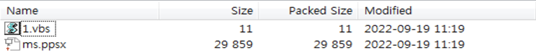 ملف صورة ISO المكتشف هذا استُخدم لتقديم برمجية خبيثة تشتمل على ملف PowerPoint وملف Visual Basic Script
