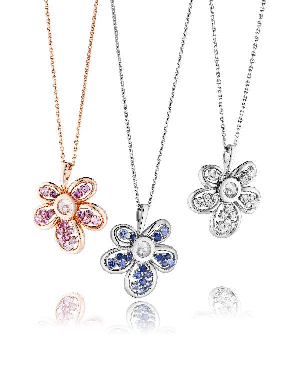 استوحيت تصاميم المجوهرات ضمن مجموعة Happy Diamonds الأخيرة من عالم الطبيعة، فجسدت الزهور المستوحاة من فن البوب بأسلوب جديد يتسم بلمسة عصرية. وقد ضمّت مجموعة الزهور من Happy Diamonds قلادة وخاتماً وأقراطاً مصنوعة من الذهب الأبيض أو الوردي 18 قيراط.