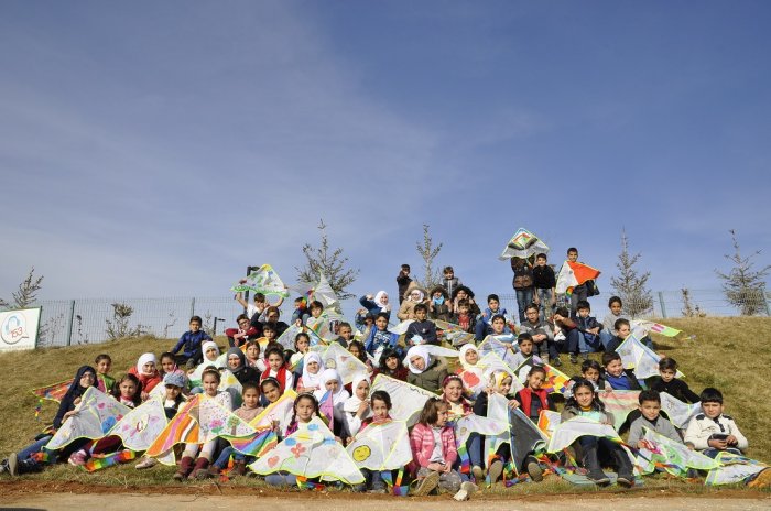 يقوم 75 طفلا من اللاجئين السوريين الذين يعيشون في دار للأيتام في غازي عنتاب-تركيا، وتتراوح أعمارهم من 8 إلى 12 سنة بتزيين الطائرات الورقية التي صنعوها بأنفسهم وتعكس تصوراتهم لأحلامهم ورؤيتهم لمستقبلهم.