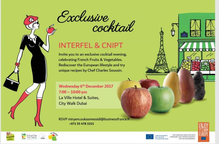 ستقوم إنترفل -الجمعية البينية لقطاع صناعة الفاكهة والخضروات الطازجة- بعرض المنتجات الفرنسية الطازجة واللذيذة في معرض عالم الأغذية سريعة التلف الذي يقام بمركز دبي التجاري العالمي في الفترة من 5 إلى 7 ديسمبر؛ إنترفل ستقوم بعرض منتجات الفاكهة والخضروات المعروفة عالمياً بجودتها العالية على رواد هذه الصناعة كما ستقوم بمقابلة متخذي القرار واكتشاف المزيد من فرص التصدير إلى الإمارات العربية المتحدة والمنطقة. أما الوفد الخاص بمعبئي وتجار البطاطا والذي يمثله " كنيبت "، فسيقدم منتجات عالية الجودة من خلال الأصناف المتميزة التي سيعرضها ستة موردين .
