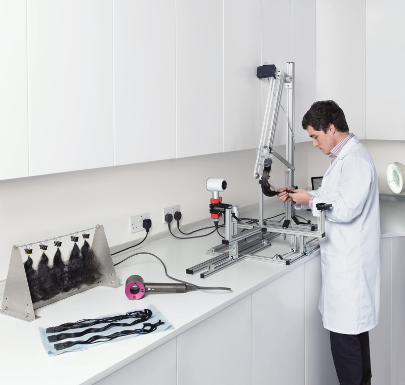 تمتلك شركة دايسون أربع مجمعات للتكنولوجيا، تضم مئات المختبرات التي يستفيد منها 6000 مهندس وعالم يعملون لدى الشركة، وضمن هذه المجمعات تجري عمليات اختبار دقيقة على مدار الساعة للأفكار والتقنيات الجديدة. وبهدف تمكين الشركة من فهم طبيعة مختلف أنواع الشعر، ومواصلة تحديد أفضل الأساليب وأكثرها صحة لتصفيف الشعر، يقوم الفريق بتطوير منصات الاختبار واستخدام أحدث المعدات، إذ أن آلات مثل المجهر الإلكتروني والكاميرات الحرارية وآلات دخان الليزر لدراسة تدفق الهواء، تساعد المهندسين في فهم تأثير تضرر الشعر، وأنواع الشعر العالمية وتأثير تدفق الهواء عالي السرعة عليها.