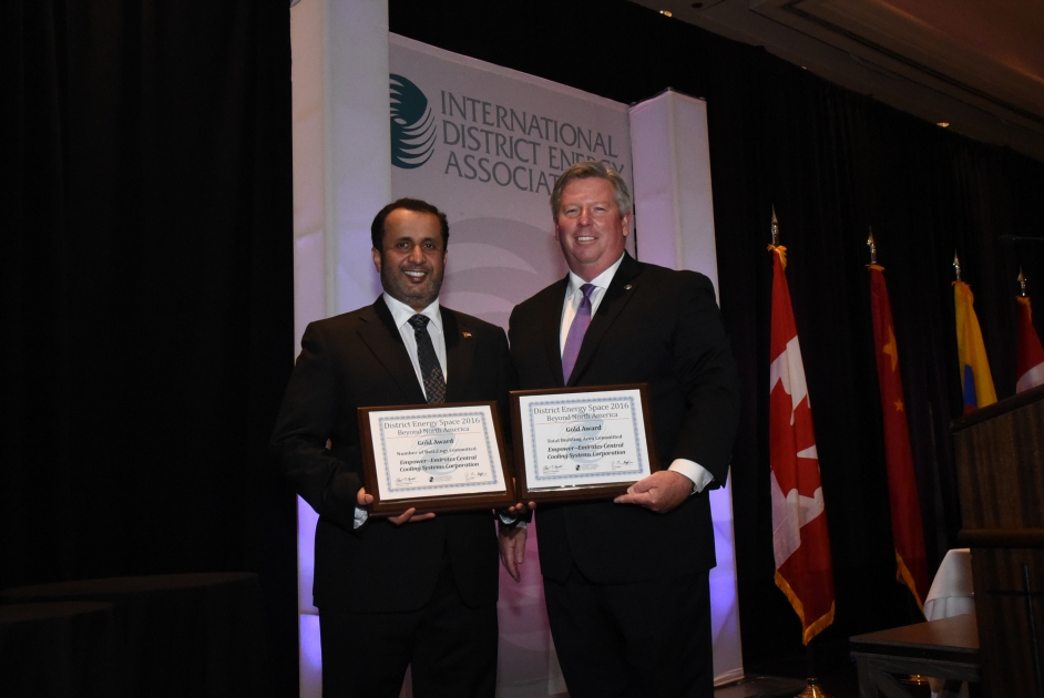 توجت مؤسسة الإمارات لأنظمة التبريد المركزي "إمباور"، أكبر مزود لخدمات تبريد المناطق في العالم، عامها الناجح بالفوز بجائزتين ذهبيتين في فئتي "إجمالي عدد المباني المتعاقد عليها" و"إجمالي المساحة المتعاقد عليها" المخصصة لخدمات تبريد المناطق خارج أمريكا الشمالية، وذلك في حفل توزيع الجوائز الخاص بالدورة الـ 108 للمؤتمر والمعرض السنوي للجمعية الدولية لتبريد المناطق في الولايات المتحدة الأمريكية والذي انعقد في مدينة سكوتسديل بولاية أريزونا الأمريكية نهاية شهر يونيو.