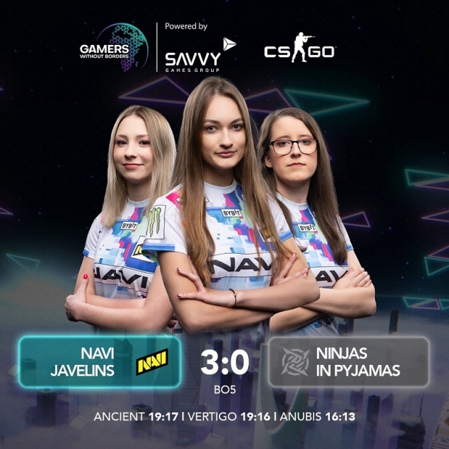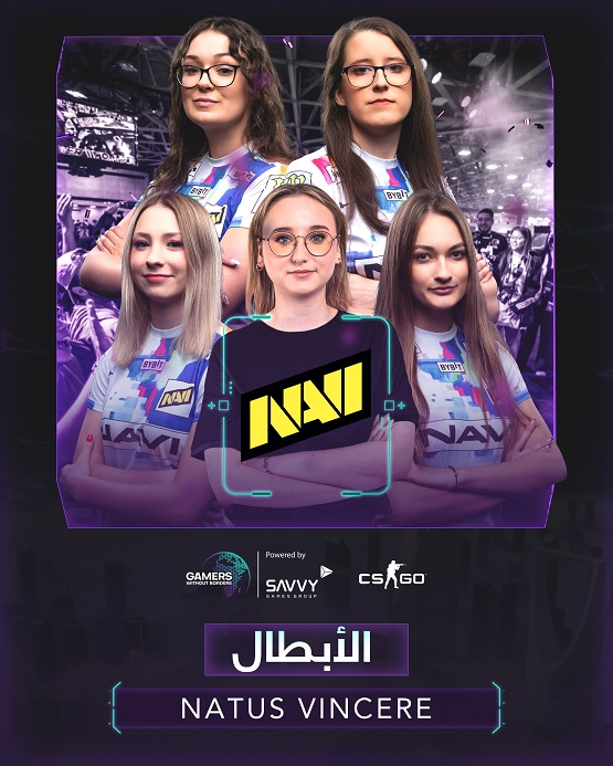 حقق فريق "NAVI Javelins" لقب بطولة "كاونتر سترايك" "(CS:GO) Counter-Strike: Global Offensive" المخصصة للسيدات والتي تُعد ثاني منافسات النخبة، ضمن الحدث الخيري الأكبر للألعاب والرياضات الإلكترونية على مستوى العالم "لاعبون بلا حدود"، والذي ينظمه الاتحاد السعودي للرياضات الإلكترونية بمشاركة نخبة محترفي الألعاب الإلكترونية وأفضل فرق العالم.