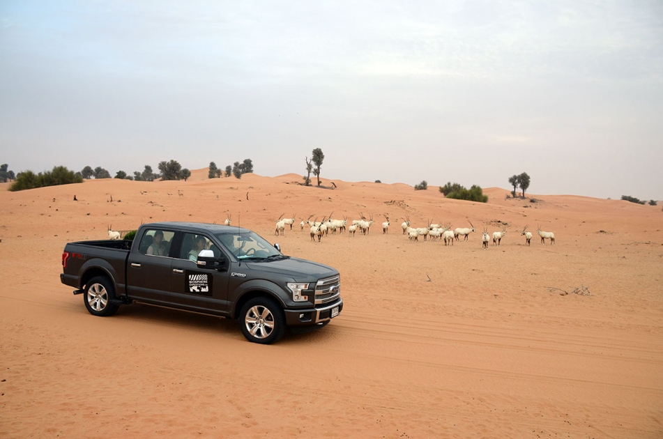واستكمالاً للتمويل السنوي الذي يقدمه برنامج منح فورد، استلمت بيوسفير إكسبيديشنز لهذا العام أيضاً شاحنتي فورد F-150 خلال فترة عملها في محمية دبي الصحراوية، هذه السيارة التي تدعوها قائدة الفريق مليكة فتاك "أداة البحث الحيوية". وقد أتاحت إعارة هاتين المركبتين خلال فترة البرنامج مجالاً لتوفير تمويل مهم يمكن توظيفه في نشاط آخر من نشاطات المحافظة على الطبيعة.