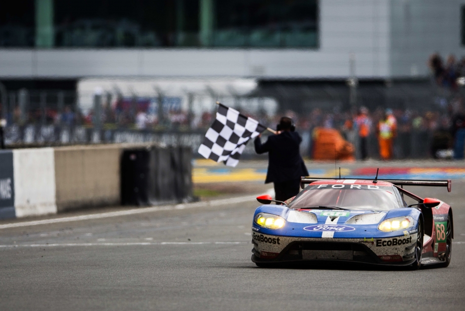 نجحت فورد GT رقم 68 التي يقودها سيباستيان بورديه (فرنسا)، وجوي هاند (الولايات المتحدة الأميركية)، وديرك مولر (ألمانيا) في عبور خط النهاية في سباق لومان عند الساعة الثالثة من يوم الأحد لتفوز بسباق الـ 24 ساعة في لومان. أما سيارة فورد GT رقم 69 التي يقودها رايان بريسكو (أستراليا)، وسكوت ديكسون (نيوزيلندا)، وريتشارد ويستبروك (بريطانيا)، فقد انضمّت إلى الفائزين على المنصة بعد حلولها في المركز الثالث بينما حلّت سيارتا فورد GT رقم 66 و67 في المركزين الرابع والتاسع.