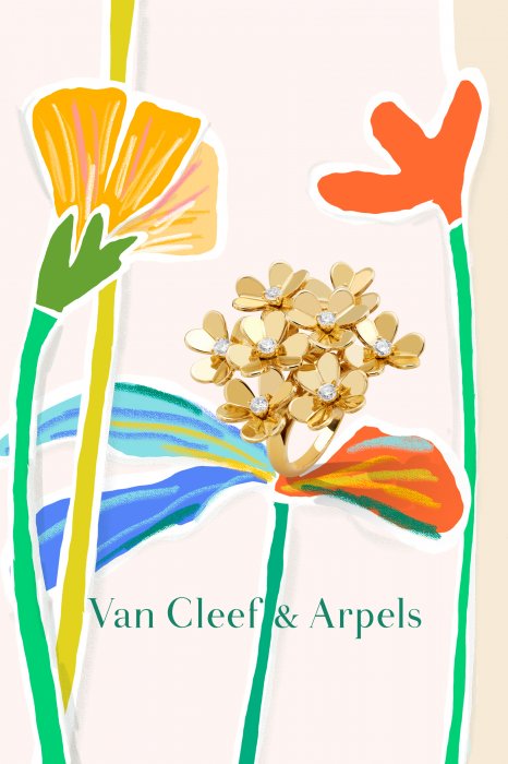 لأول مرة في مجموعة فريفول، يجمع خاتم فيه 8 زهور بين الذهب الوردي والأبيض والماس بشكل شاعري جميل. خمس زهور من الذهب الأبيض، تم وضع كلّ منها بدقة على ارتفاعات مختلفة مرصّعة بالماس، تتناغم في حوار مع ثلاث زهور من الذهب الوردي مزينة بحجر مركزي. تتجسد براعة حرفيي الدار في الطريقة التي يتم بها تجميع الزهور الثمانية على الخاتم، وتزيين الإصبع بباقة ثلاثية الأبعاد. يعزز الذهب الوردي المصقول كالمرآة التفاعل بين الضوء والانعكاسات، كما لو أنّ الخاتم يتلألأ في ضوء الشمس.