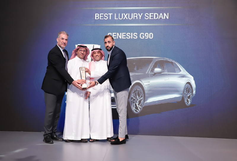 حققت سيارة جينيسيس 90Gالسيدان الفاخرة المركز الافضل بين منافساتها في فئة السيدان الفاخرة ضمن جوائز قطاع السيارات السنوية التي تنظمها وكالة "بي آر ارابيا" المتخصصة بالاتصالات التسويقية والاعلامية بقطاع السيارات في المملكة العربية السعودية. وأقيم الحفل في مدينة جدة بحضور رئيس وأعضاء اللجنة الوطنية لتجار السيارات في المملكة.
