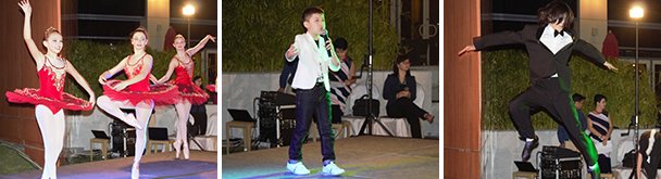 استمتع الجمهور بالعديد من الفقرات الرائعة والتي بدأت مع موسيقى الباليه التي أعلنت الافتتاح تلاها عرض مواهب الاطفال من جميع أنحاء العالم وقد كان معظمهم من روسيا الإمارات العربية المتحدة و كازاخستان حيث تنوعت العروض بين القطع الموسيقية الأكثر شهرة مثل الفالس من «الجمال النائم» تشايكوفسكي ، «بوند007» إضافة الى الدبكة وغيرها الكثير.