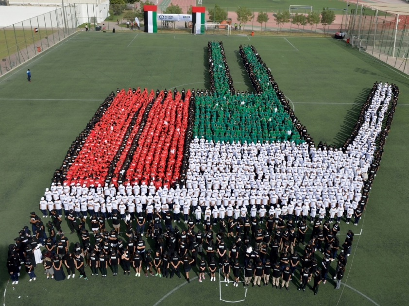 وبأغلبية طلابية من مدرستنا الثانوية الإنجليزية الشارقة (للبنات)، ارتدى الطلاب ملابساً بألوان العلم الإماراتي، وشكلوا صورة يد مفتوحة تحولت إلى الإشارة الثلاثية التي أطلقها صاحب السمو الشيخ محمد بن راشد آل مكتوم، نائب رئيس الدولة ورئيس مجلس وزراء دولة الإمارات العربية المتحدة، وحاكم دبي.
