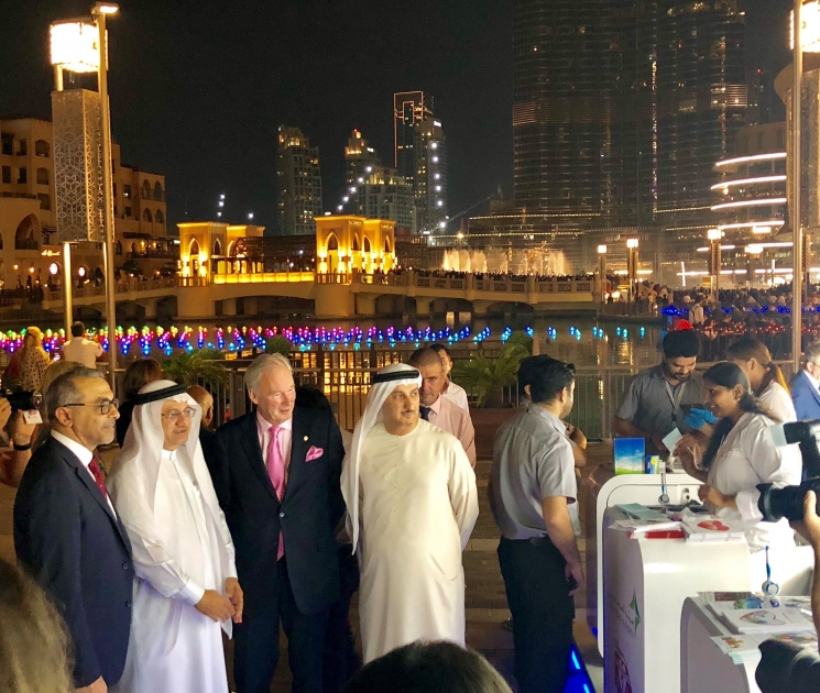 شركاء الحملة يعرضون فيديو توعويا" ببرج خليفة ، أطول مبنى في العالم ، لتسليط الضوء على أهمية الفحص المبكر للوقاية من أمراض القلب والأوعية الدموية، والصلة بين ارتفاع الكولسترول وأمراض القلب والأوعية الدموية