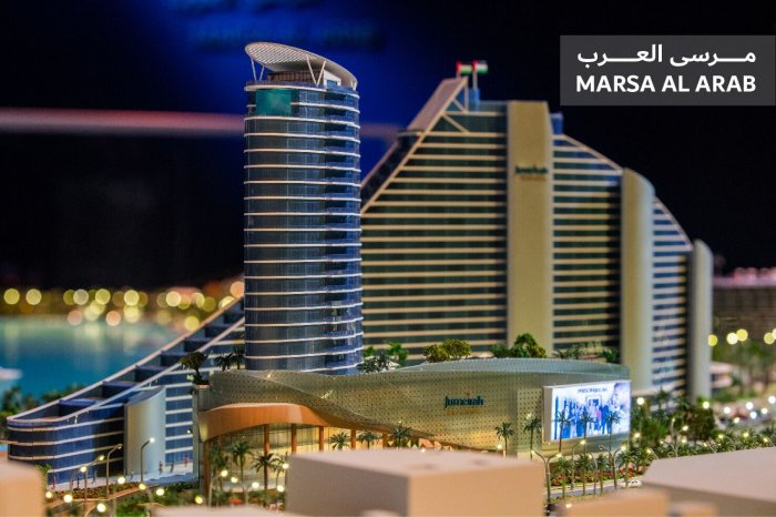 ستقدم "مجموعة جميرا" خدمات فندقية إضافية في هذا المنتجع الجديد الى جانب الفنادق التابعة لها في هذه المنطقة وأبرزها برج العرب جميرا، فندق جميرا بيتش، فندق جميرا النسيم، فندق جميرا ميناء السلام، فندق جميرا القصر وفندق جميرا دار المصيف. وسيشتمل "مرسى العرب" على فندق عائلي جديد سيوفر تجربة رائعة لمرتاديه. ولتعزيز هذه التجربة سيتم نقل الحديقة المائية "وايلد وادي" التي لاقت نجاحا باهراً منذ افتتاحها بحيث أضحت من أهم التجارب السياحية الترفيهية في دولة الامارات الى محاذاة شاطئ الجزيرة بمساحة تفوق ضعف مساحتها الحالية. وستضم "وايلد وادي" جولات وألعاب مائية جديدة بالإضافة إلى خيارات ترفيهية غير مسبوقة ستضيف أرقاماً قياسيةً ضمن فئتها، حيث تطمح إلى تعزيز مكانتها لتكون علامة ترفيهية رائدة تحظى بشهرة عالمية.