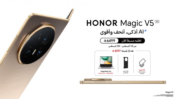 أعلنت شركة HONOR، العلامة التجارية الرائدة عالميًا في مجال أنظمة الأجهزة الذكية المعززة بالذكاء الاصطناعي، رسميًا عن فتح طلبات الحجز المسبق لهاتف HONOR Magic V5المرتقب في منطقة الشرق الأوسط وأفريقيا. جاء هذا الإعلان عقب حدث إطلاق إقليمي ناجح عُقد في دبي تحت شعار "كشف إمكانيات جديدة"، والذي حظي بتفاعل إيجابي كبير من ممثلي الإعلام، وخبراء التقنية، والمعجبين على حد سواء. وتدعو HONOR الآن المستهلكين ليكونوا من بين أوائل من يجربون هذا الجهاز القابل للطي بتصميم أذكى، أنحف وأقوى.