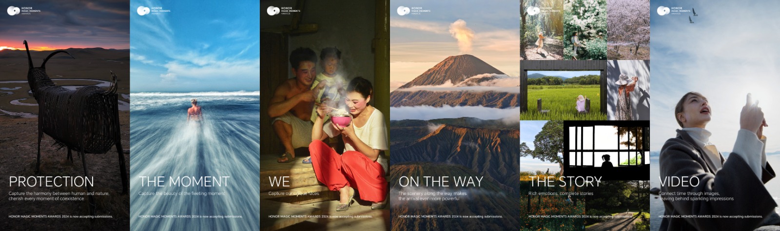 وفي الفترة من 6 أبريل حتى 6 أغسطس، يمكن لعشاق التصوير الفوتوغرافي تقديم مشاركاتهم على موقع HONOR الرسمي (https://www.honor.com/global/magic-moments-awards/). سيتم فتح منصة التقديم في 6 أبريل الساعة 00:00 (UTC/GMT +8). ويمكنهم أيضًا المشاركة في جوائز HONOR Magic Moments لعام 2024 من خلال النشر على قنوات التواصل الاجتماعي من خلال إضافة #HONORMagicMoments في المنشور التوضيحي الخاصة بهم.