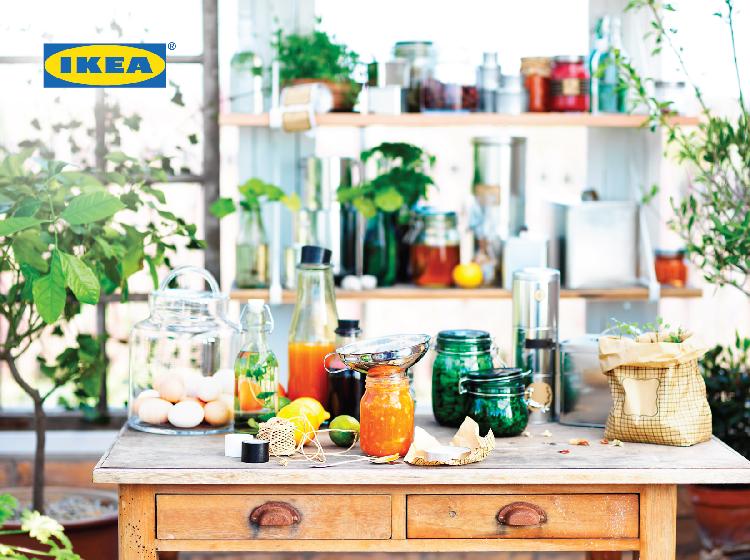 تقدم ايكيا تشكيلة واسعة ورائعة من منتجات حفظ وتخزين الطعام، وتشمل مجموعة من الحاوية المناسبة للمربى المصنوعة في المنزل، الزيوت والخل وزجاجات العصير. كما تشمل أيضاً العلب المعدنية لتخزين الأكل المجفف مثل الفطر والأعشاب.