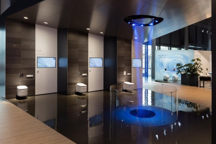 تجدر الإشارة أن الابتكارت المميزة عرضت للزوار خلال جولتهم في الجناح. وقدّم قسم الحمامات أوسع تشكيلات من منتجات هذا القطاع، حيث صبّ التركيز على نماذج مجموعة Essence بمختلف أشكالها وألوانها وتصاميمها، في حين سلّط قسم رشاشات الاستحمام الضوء على الحلول الذكية والتصاميم الجديدة، ومنها الحمام الذي لا شك أنه الأكثر تميزاً في العالم المجهّز بنظام رشاشات الاستحمام الفخمة الجديدة من مجموعة AquaSymphony، ويَعد مستخدميه بتجربة استثنائية للمنتجع الصحي. وشكّلت مكبرات الصوت الاختيارية من Bang & Olufsen Celestial مفاجأة للمستخدمين عبر الأداء الصوتي المتميز. واللافت أن المقطع الموسيقي المميّز هو من توقيع مهندس الصوت الشهير "موغواي" الذي أطلق أغنيته الجديدة "Rain" برعاية "غروهي" خلال معرض "آي إس إتش".