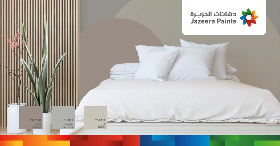 اختارت "دهانات الجزيرة" الشركة الرائدة في مجال الدهانات والألوان والحلول الإنشائية، مجموعة مميزة من الألوان المتناسقة والمناسبة لغرفة نوم مميزة، وذلك بتوصية من خبراء ومصممي الألوان والديكور.