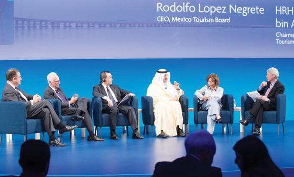 وأضاف في كلمة التي ألقاها بمؤتمر لمجلس السفر والسياحة العالمي الذي عقد أمس في أمريكا، "نعم نحن لا نصدر تأشيرات سياحية بعد أن قررت الحكومة إيقاف إصدارها مؤقتاً للمراجعة، وحتى تكتمل البنية التحتية والخدمات وبعد التأكد من سد حاجة السوق المحلي الأهم والتركيز على إرضائه، بعدها يعاد النظر في إصدار التأشيرات لفئات محدودة ونوعية من جنسيات مختارة، لتأتي وتتعرف أكثر على هذا البلد العظيم بمكوناته التي تأتي في مقدمتها أنها أرض الحرمين الشريفين ومهد الإسلام الذي هو غاية ما نعتز به، إضافة إلى ما تحتضنه أرضه من كنوز أثرية والتنوع في المواقع الطبيعية، وسينعم الزوار بالتعرف على ثقافة المملكة والقيم السائدة، فمنذ بدايات عمل هيئة السياحة أكدنا على أن السياحة تتماشى مع قيم المملكة وعاداتها الأصيلة، أما ما يتعلق بقضايا المرأة وسياحتها في المملكة فإنني من أكثر المؤمنين بقدرات المرأة وتجاربي بالعمل مع المرأة في هيئة السياحة والجمعيات الخيرية تؤكد أنهن قادرات على إحداث نقله كبيرة في كل المجالات".