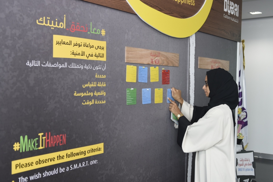 أعلنت هيئة دبي للثقافة والفنون (دبي للثقافة) عن أن مبادرة "معًا نحقق أمنيتك"، وهي باكورة نشاط برنامج السعادة للهيئة، قد حققت استجابة إيجابية واسعة بين موظفيها. وأُطلقت المبادرة في 16 يناير، ووجهت الدعوة للفريق لتقديم أمنياتهم لفريق السعادة الذي يتولى بعد ذلك فرزها وعرضها على جميع الموظفين الذين يرغبون في التطوع والدعم لتحقيق رغبات زملائهم، وذلك عن طريق تسخير مهاراتهم وخبراتهم ومعرفتهم وعلاقاتهم. وتهدف هذه المبادرة إلى تشجيع الموظفين على العمل من أجل سعادة الآخرين، ونشر السعادة والإيجابية، وتعزيز التواصل بين جميع أعضاء فريق الهيئة.