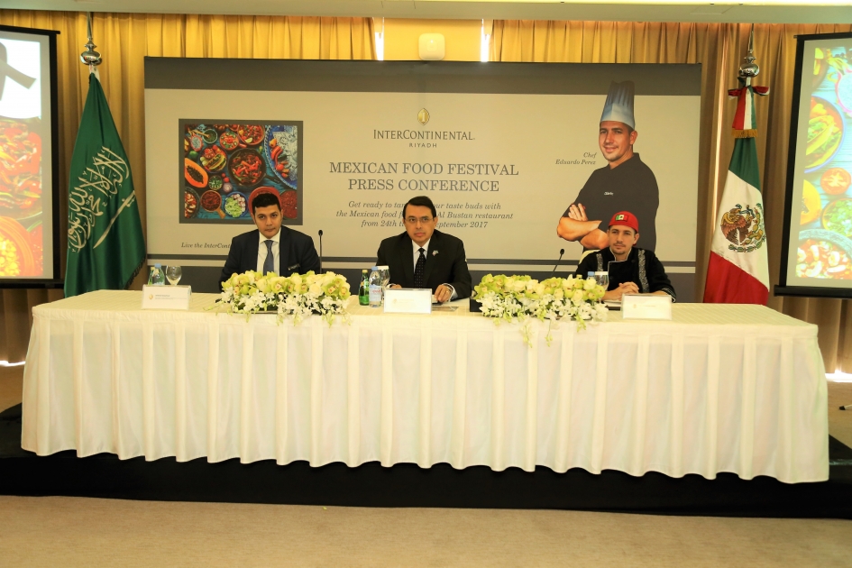 افتتح سعادة السفير المكسيكي في المملكة العربية السعودية، ألفريدو ميراندا المؤتمر الصحفي لأسبوع المأكولات المكسيكية في فندق انتركونتيننتال الرياض، والذي ينطلق اعتباراً من يوم الأحد ٢٤ سبتمبر ٢٠١٧ ولمدة أسبوع تحت مسمى 'مهرجان الذوق المكسيكي'.
