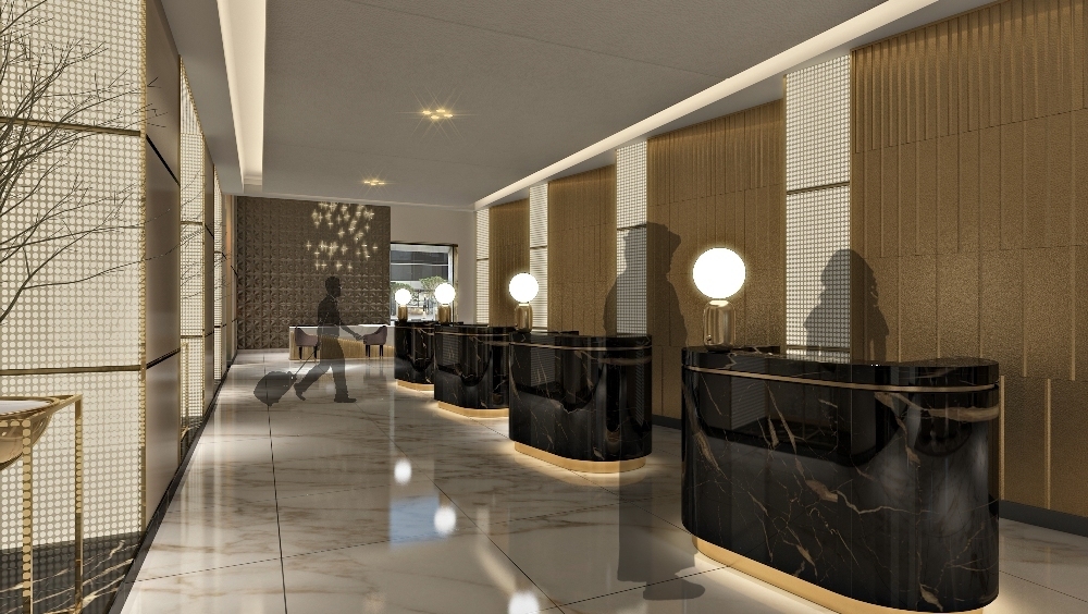 ويتمتع التصميم الجديد الذي سيكتمل قريبآ بوجود مكتب إستقبال مباشر ليتسنى لموظفي الفندق التواصل مباشرة مع الزوار وتوفير إحتياجاتهم بخصوصية أكثر، وذلك وسط مشهد بانورامي عصري وواسع وأنيق، فضلاً عن وجود مكتب الإستعلامات الذي يقع في قلب اللوبي، مسهلآ بذلك عملية وصول النزلاء إليه.
