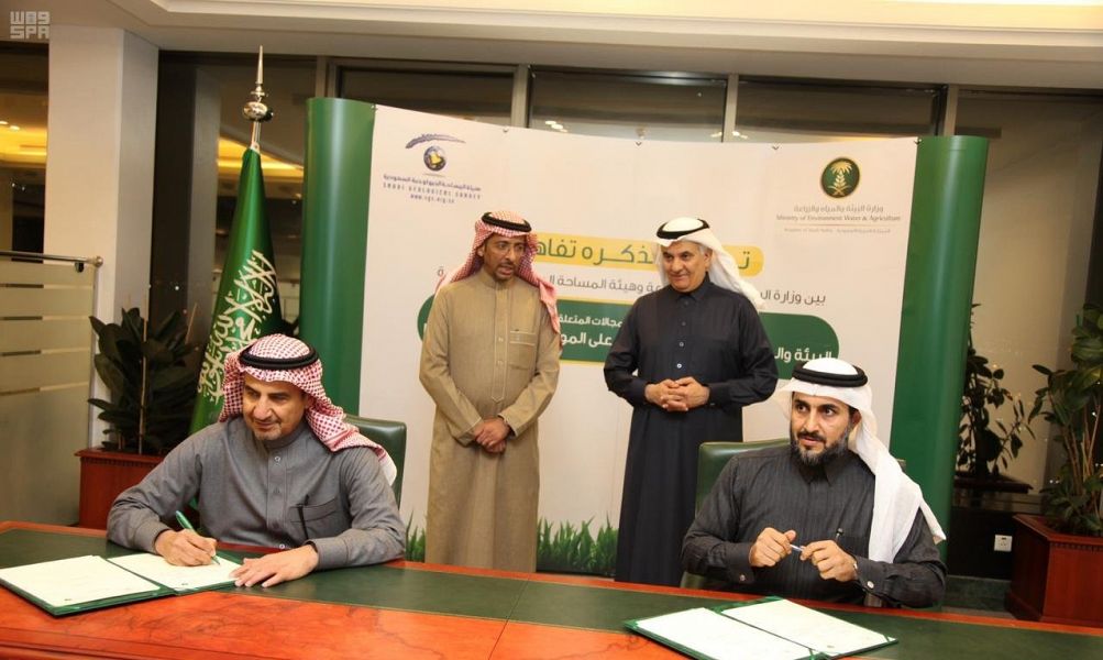 شهد معالي وزير البيئة والمياه والزراعة المهندس عبد الرحمن بن عبدالمحسن الفضلي، ومعالي وزير الصناعة والثروة المعدنية الأستاذ بندر بن إبراهيم الخريّف توقيع اتفاقية تعاون علمي وفني بين وزارة البيئة والمياه والزراعة وهيئة المساحة الجيولوجية السعودية، وذلك في إطار التعاون المشترك بين الطرفين لخدمة المصالح والأهــــداف المشـــتركة في المجالات المتعلقة بأبحاث البيئة والمياه والزراعة والمحافظة على الموارد الطبيعية وحمايتها لتحقيق التنمية الاقتصادية والاجتماعية بالمملكة.
