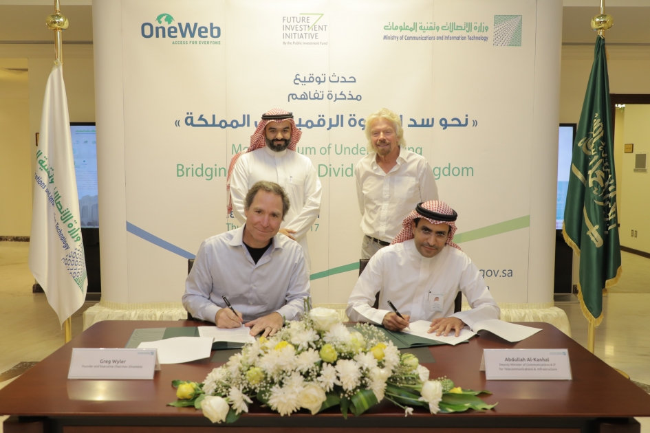 وقعت وزارة الاتصالات وتقنية المعلومات مذكرة تفاهم مع شركة ون ويب العالمية للمساهمة في نشر الإنترنت عالي السرعة في المناطق النائية.