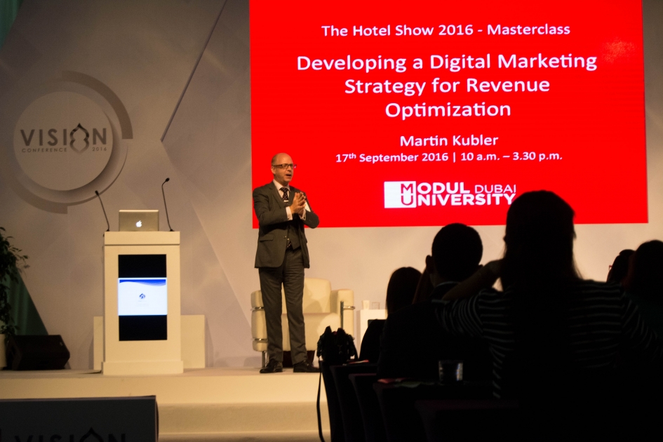 وخلال مشاركتها في المعرض، ستقدم الجامعة دورة تدريبية تحت عنوان "تطوير استراتيجية التسويق الرقمي لتحسين الإيرادات" كجزء من رؤية المؤتمر. وسيتولى تقديم الدورة مارتن كوبلر، المحاضر في جامعة مودول دبي، وسيركز فيها على الرؤى التي يحتاج إليها القائمون على القطاع الفندقي لتحسين الإيرادات، وذلك من خلال الاعتماد على قنوات التسويق الرقمي، بما في ذلك قنوات التواصل الاجتماعي والهواتف المحمولة وشبكة الإنترنت.