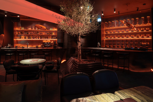 تمتد الصالة على طابقين، وتضم مناطق جلوس مفتوحة، ومناطق لكبار الشخصيات، وركنًا مخصصًا للشيشة، بالإضافة إلى بار كوكتيلات في الطابق الأرضي. تُسلّط صناديق الإضاءة ذات التصميم البسيط أضواءً ملوّنة من الأعلى، تنسجم بانسيابية مع عناصر التصميم الداخلي. في الطابق الأول، يستمر تجسيد مفهوم الأخدود الرملي، حيث تعكس الجدران المكسوّة بالمرايا إحساسًا بالمساحة، ويضم الطابق أيضًا بارًا إضافيًا ومناطق أخرى مخصصة لكبار الشخصيات. تم تطوير نظام الإضاءة من قِبل استوديو YARKO، مع اختيار درجات العنبر الناعمة لمحاكاة ضوء الغروب، مما يُبرز التفاصيل المستوحاة من الأخاديد ويتفاعل مع دخان الشيشة، ليضفي على المكان أجواءً هادئة وحميمية. يُسهم هذا الأسلوب التصميمي في توفير بيئة هادئة تُمكّن الزوار من الاسترخاء والتركيز على تجربتهم الشخصية.