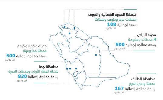وبيّنت الشركة أن العقود تتضمن تطوير 4 محطات بمنفوحة في مدينة الرياض سعة معالجتها الإجمالية 900 ألف متر مكعب يوميًا، وتطوير محطتي حدا وعرنة بمكة المكرمة بسعة إجمالية تبلغ 500 ألف متر مكعب يوميًا، وتطوير محطة المطار الأولى ومحطات الخمرة في محافظة جدة بسعة معالجة إجمالية تبلغ 830 ألف متر مكعب يوميًا، كذلك تطوير محطتي وادي العرج في مدينة الطائف بسعة معالجة إجمالية تبلغ 167 ألف متر مكعب يوميًا، وتطوير محطات عرعر وطريف وسكاكا في منطقتي الحدود الشمالية والجوف بسعة معالجة إجمالية تبلغ108 آلاف متر مكعب يوميًا.