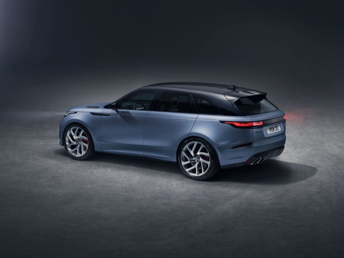 حتى حروف شعار لاند روڤر على الغطاء الأمامي ومؤخرة السيارة تم تحسينها، مع تشطيبة مخرشة على الجزء المعدني من الحروف المؤلفة من قطعتين، ما يضيف المزيد من التكامل إلى المظهر الخارجي، كما إن سيارة " SV أوتوبيوغرافي ديناميك إيديشن" هي سيارة ڤيلار الوحيدة المتوفرة بلون "ساتين بيرون" الأزرق – طلاء معدني من مجموعة الألوان المميزة في قسم العمليات الخاصة – وجميع السيارات تحتوي على سقف بلون " نارفيك" أسود كميزة أساسية.