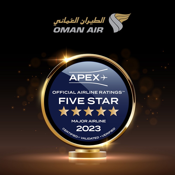 نال الطيران العماني، الناقل الوطني لسلطنة عمان، تصنيف الخمس نجوم في فئة شركات الطيران الرئيسية نتيجة اختيار المسافرين حول العالم، وذلك ضمن حفل جوائز أبيكس، إحدى كبرى الجهات العالمية المتخصصة وأكثرها ثقة في مجال تقييم تجارب المسافرين الدوليين. تم الإعلان عن الجائزة وتقديمها إلى الطيران العماني بتاريخ 26 أكتوبر 2022 خلال حفل توزيع جوائز أبيكس العالمية بولاية كاليفورنيا الأمريكية. وأتيح للمسافرين تقديم تقييماتهم عن خمس فئات مجتمعة على ذات الشاشة لتسهيل العملية وإتمامها في غضون 15 ثانية، وشملت تلك الفئات: راحة المقعد، خدمة المقصورة، الطعام والشراب، الترفيه، وخدمة الواي فاي.