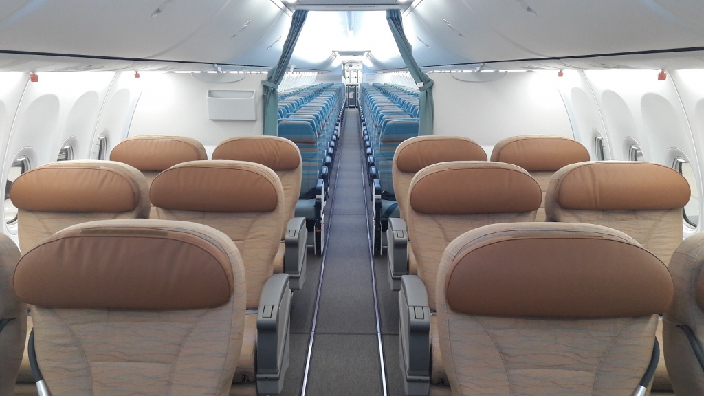 تضم مقصورة درجة رجال الأعمال فى طائرة البوينج الجديدة عدد 12 مقعدا تتّسم بالحداثة والابتكار بمساحة 46 بوصة، أما مقصورة الدرجة السياحية فيوجد بها عدد 150 مقعد تفصل بين صفوفها مسافة 30 بوصة، بالإضافة إلى تزويد كل مقعد بشاشات تلفزيونية بحجم 10,6بوصة.