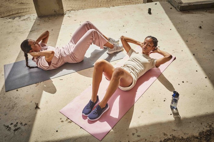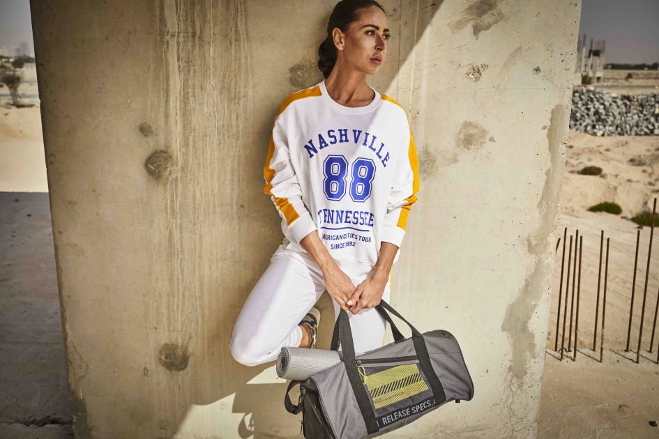 أما تصاميم السيدات فتضمّ كنزات قصيرة بأكمام قصيرة أيضاً وسراويل ضيقة بتدرجات الرمادي والوردي للاستمتاع بجلسات يوغا ممتعة للغاية. وتضم التشكيلة تصاميم تضمن مستويات عالية من الراحة مثل الكنزات الكلاسيكية بطابع رياضي والمزينة بالرسوم الجرافيكية، وكنزات تي شيرت مريحة وأطقم من قطعتين وكنزات قصيرة مثالية لتمارين اليوغا، إضافة إلى السراويل الواسعة التي تتميز بقصة قصيرة وتتوفر بألوان دافئة.