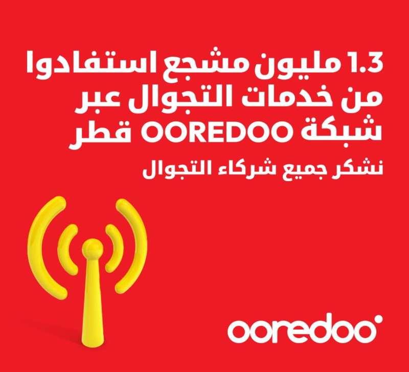 وأظهرت الأرقام بأن شبكة Ooredoo قطر قد استضافت حوالي 1.3 مليون مستخدم استفادوا من خدمات التجوال خلال حضور فعاليات بطولة كأس العالم FIFA قطر 2022™. وأرجعت الشركة هذا الرقم الكبير إلى الاتفاقيات العديدة التي وقعتها مع العديد من شركاء التجوال تحضيراً للبطولة.