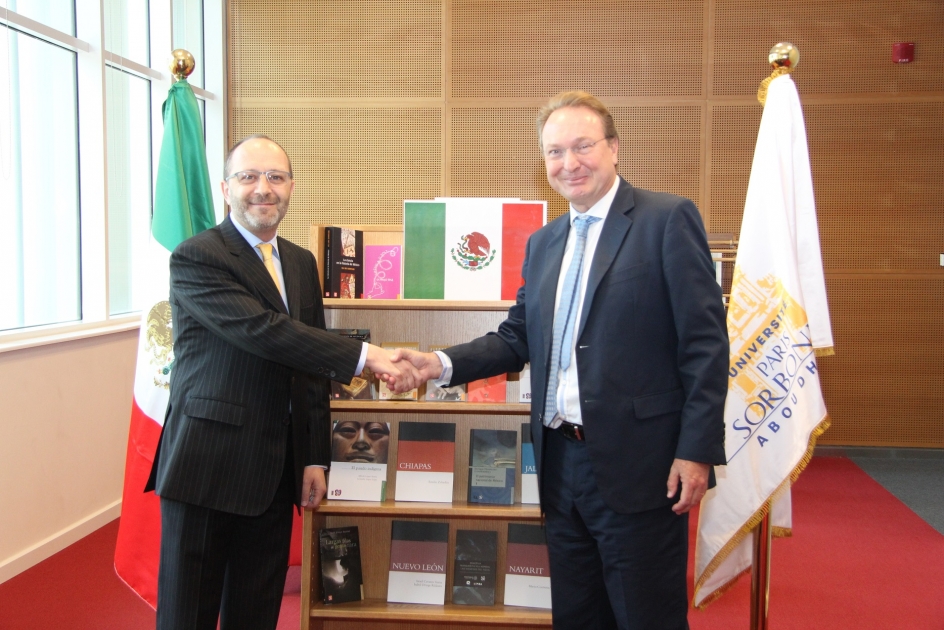 تماشياً مع مبادرة” عام 2016.. عام القراءة“ التي أطلقتها دولة الإمارات العربية المتحدة، تلقت جامعة باريس السوربون-أبوظبي مجموعة من الكتب العريقة باللغة الإسبانية على شكل هبة من السفارة المكسيكية في الدولة ليأتي ذلك كإشارة واضحة لأهمية التنوع الثقافي التي تحرص أن تحافظ عليه الجامعة من خلال مكتبتها التي تضم ما يقارب 100 ألف كتاب بلغات مختلفة ومواضيع متنوعة. حضر هذه الفعالية التي نظمت في مكتبة الجامعة على جزيرة الريم، أبوظبي كل من ممثل السفارة المكسيكية وعدد من أعضاء إدارة الجامعة، فضلاً عن موظفيها وطلبتها.