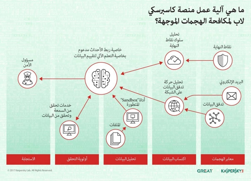 أعلنت كاسبرسكي لاب عن تحديث منصة كاسبرسكي لمكافحة الهجمات الموجهة " Kaspersky Anti Targeted Attack Platform"، وهو حل مصمم للكشف عن التهديدات المتقدمة والهجمات الموجهة للشركات. ويدمج هذا الحل بين خوارزميات التعلم الآلي المتقدمة وبين استخبارات التهديدات العالمية القابلة للتنفيذ ويتميز بقدرته على التكيف مع البنية التحتية للعملاء لغرض مساعدة الشركات الكبيرة في الكشف عن الهجمات المتطورة المسببة في إحداث أضرار فادحة. كما خضعت منصة كاسبرسكي لمكافحة الهجمات الموجهة "Kaspersky Anti Targeted Attack Platform" لتحسينات شملت إضافة ميزة قابلية التوسع بما فيها أداة "Sandbox"، كما شهدت المنصة تحسينات أخرى لتعزيز الرؤية عن طريق إجراء تحديثات لواجهة المستخدم الرئيسية .