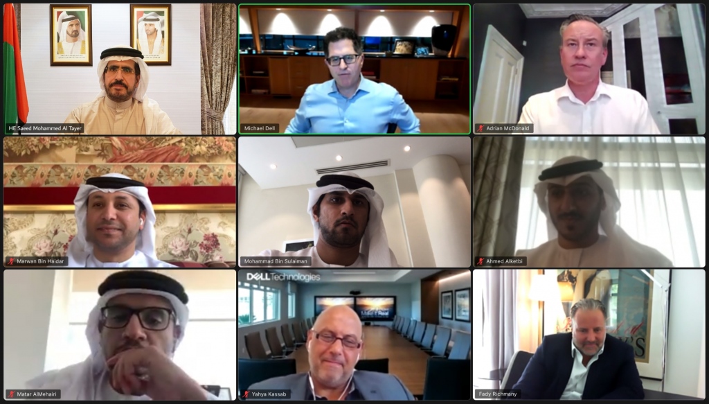 عقد معالي سعيد محمد الطاير، العضو المنتدب الرئيس التنفيذي لهيئة كهرباء ومياه دبي، اجتماعاً عبر تقنية الاتصال المرئي، مع مايكل ديل، رئيس مجلس الإدارة والرئيس التنفيذي لشركة "ديل تكنولوجيز" (Dell Technologies) التي تعد إحدى الشركات العالمية الرائدة في مجال الاتصالات وتكنولوجيا المعلومات.