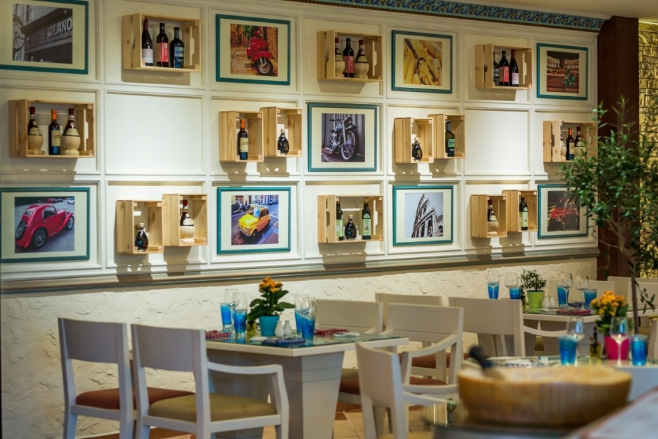 وتتضمن قائمة الطعام الرئيسية تشكيلة من الباستا والدجاج الميلاني، وكذلك طبق أفخاذ الدجاج المطهوة ببطىء مع الزيتون الأسود بولينتا، وطبق كارني بيتزايولا الإيطالي الشهير، وطبق فخذ لحم الضأن المشوي بالكامل ويقدم مع السبانغ، فضلا عن أطباق المعكرونة بيني وفيتوتشيني مع حرية اختيار الصلصة من الطماطم أو البولونيز أو الكريم بيستو، وكذلك طبق الشمندر مع الخضار واللازانيا النباتية والبيتزا.