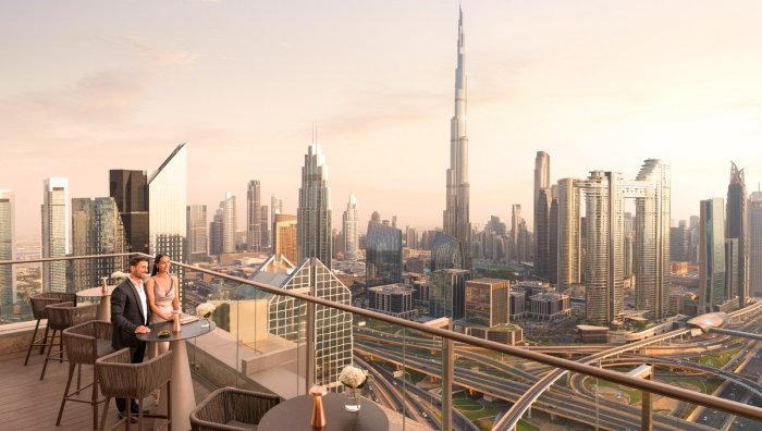 أما المسبح الخارجي فيوفّر تجربة استجمام فريدة بإطلالة خلابة على برجخليفة، تجمع بين أجواء المنتجع الفاخر ونمط المدينة العصري.
