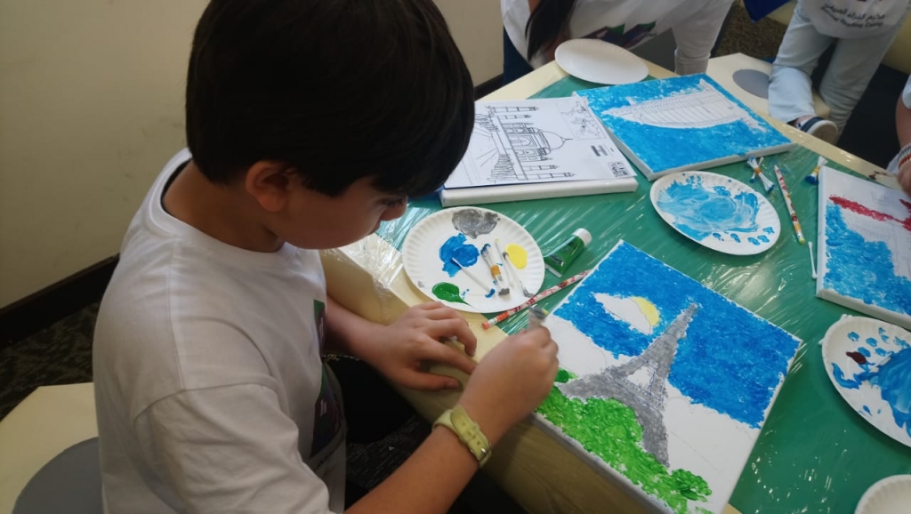 ويقدم المخيم ورشة عمل تدريبية بعنوان "رحلة حول العالم"، حيث يتعرف الأطفال من خلالها على أهم الأساليب المتبعة في مجال رسم المعالم المشهورة حول العالم على لوحات مصنوعة من القماش، كما يكتشفون من خلالها جماليات وأسس الفن التجريدي، إلى جانب تخصيص ورشة "المصمم الصغير"، التي تهدف إلى تحفيز الأطفال على التفكير الإبداعي، والحفاظ على البيئة، كونها توفر لهم فرصة التفكير خارج الصندوق لإعادة تدوير بعض المواد والاستفادة منها مجدداً.
