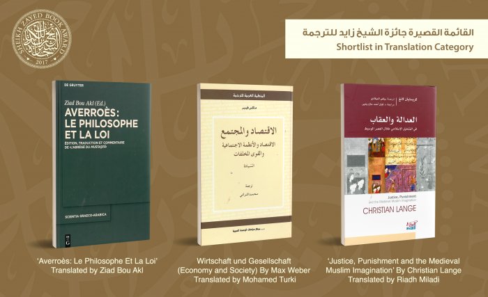 أعلنت جائزة الشيخ زايد للكتاب اليوم عن القوائم القصيرة في فرعيْ: الترجمة والفنون والدراسات النقدية. وضمت القائمة القصيرة الخاصة بجائزة الشيخ زايد للترجمة الأعمال التالية: