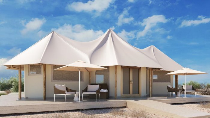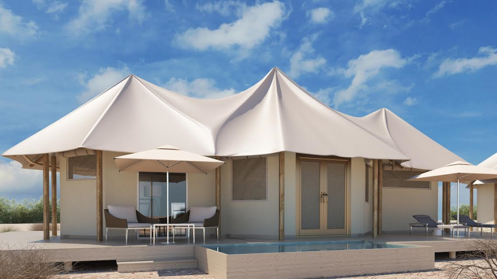 ويتضمن المشروع 20 خيمة فاخرة ،5 منها للعائلات و15 للضيوف، يتمتع كل منها بحوض سباحة خاص، وصممت الخيام خصيصاً لمنح نزلائها المزيد من الراحة والخصوصية، في وقت توفر إطلالات مذهلة على المحيط الهندي وعلى غابة أشجار القرم المحيطة بالمشروع.