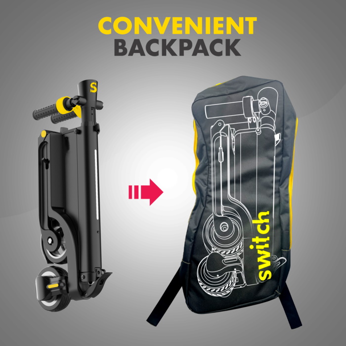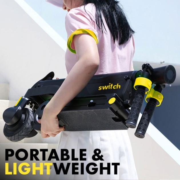 لنبدأ مع سكوتر ES-A125 الذي يضمن تجربة تنقّل غاية في الراحة والسلاسة، حيث يتألّق بهيكل قابل للطي في أقل من 4 ثوانِ ووزن خفيف لا يتجاوز 10 كج، كما تم تزويده ببطارية عالية الأداء يمكن فكّها وتركيبها بسهولة مع محرك بقوة 250 واط وسرعة تبلغ 25 كم في ساعة. ولأن التميز عنواننا، ستحصلون عند شراء هذه القطعة من سويتش على حقيبة ظهر لحمل السكوتر إينما ذهبتم، مما يتيح أفضل خيار للتنقّل في المدينة سواء من أجل الوصول إلى محطة الحافلات أو التجوّل ضمن المناطق المزدحمة بدون عناء.
