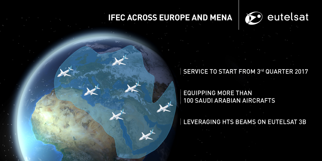الرياض، 5 فبراير 2017– من المتوقع أن يتحول استعراض البريد الإلكتروني ومتابعة وسائل االتواصل الاجتماعي ومشاهدة بث الفيديو المباشر على ارتفاع 36 ألف قدم عن سطح الأرض إلى حقيقة واقعة بحلول نهاية العام الجاري للمسافرين على متن الطائرات الذين يستفيدون من خدمات الإتصال الفضائي الذي تزوده شركة «تقنية الفضائية»، حيث أعلن اليوم عن ابرام اتفاقية بين شركة «تقنية الفضائية»، والمملوكة بالكامل لصندوق الاستثمارات العامة في المملكة العربية السعودية وشركة «يوتلسات كوميونيكيشنز» (رمزها في بورصة نيويورك يورونكست باريس:ETL)، وهي إحدى الشركات الرائدة في العالم في مجال تشغيل الأقمار الاصطناعية. وتوفر هذه الإتفاقية والتي تقدر بملايين الدولارات وتمتد لعدة أعوام حزمة مركزة على القمر الاصطناعي «يوتلسات 3 بي» (E3B) لتقديم تقنية اتصالات النطاق الفضائي العريض (HTS) لعملاء «تقنية الفضائية» من شركات الطيران في منطقة الشرق الأوسط وشمال إفريقيا والبحر المتوسط وأوروبا. وستكون الخطوط الجوية العربية السعودية، أول شركة طيران تجارية تصل أسطولها تقنية اتصالات النطاق الفضائي العريض لجميع طائراتها متوسطة وطويلة المدى.