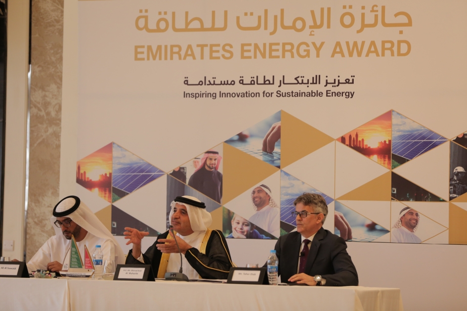 وخلال كلمته في المؤتمر أكّد سعادة أحمد بطي المحيربي، الأمين العام للمجلس الأعلى للطاقة بدبي ونائب رئيس اللجنة التنفيذية لجائزة الإمارات للطاقة: "على أهمية المشاركة في الجائزة والتي تهدف الى تعزيز ثقافة التميز والإستدامة والابتكار في ادارة الطاقة وضمان استدامة مصادر الطاقة البديلة والنظيفة."