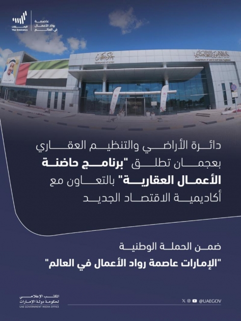 أطلقت دائرة الأراضي والتنظيم العقاري في عجمان، وبالتعاون مع أكاديمية الاقتصاد الجديد، برنامج "حاضنة الأعمال العقارية"، أحد برامج الحملة الوطنية "الإمارات عاصمة رواد الأعمال في العالم"، والذي يأتي ليشكل نقلة نوعية في دعم قطاع ريادة الأعمال العقارية في إمارة عجمان.